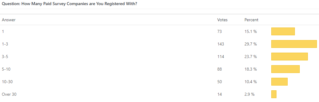 In our study, we asked many more questions. The results were interesting and we plan many more articles about them. But for now, we wanted to discuss one thing that was obvious. Do you know what is the worst mistake people make (and this is definitely the reason why people make little money with paid surveys)? People don’t register with many survey panels. When we say things like ‘here are the best 3 panels’, people probably feel that these are the best panels for them and join only there. This is definitely a mistake. Because even if they are the best, these survey panels provide only a limited amount of surveys. So, when we say ‘these are the best 3 companies’, this does not mean that you have to register with them only. It is ok to prioritize them, but you should register with many more. We recommend 10 panels to an average survey panelist. For people that do this professionally, even up to 30.