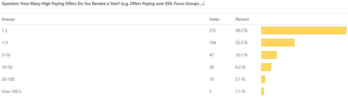 How Many High Paying Offers Do You Receive a Year? (e.g. Offers Paying over $50, Focus Groups …)