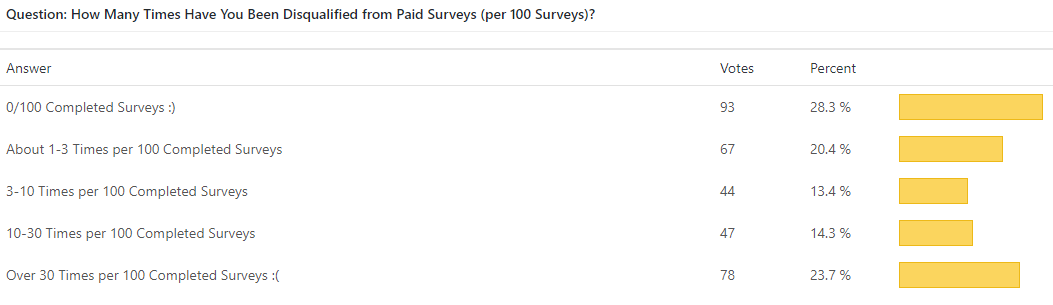How Many Times Have You Been Disqualified from Paid Surveys (per 100 Surveys)?