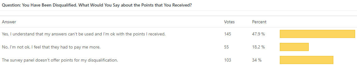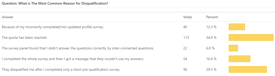 Although we expected more negative votes against paid surveys disqualification, which definitely is something negative, we found that people didn’t answer that way. It seems that people understand that this sometimes happens. Instead, we got great tips on what companies can do to optimize the disqualification process and we will write about this in our next posts.